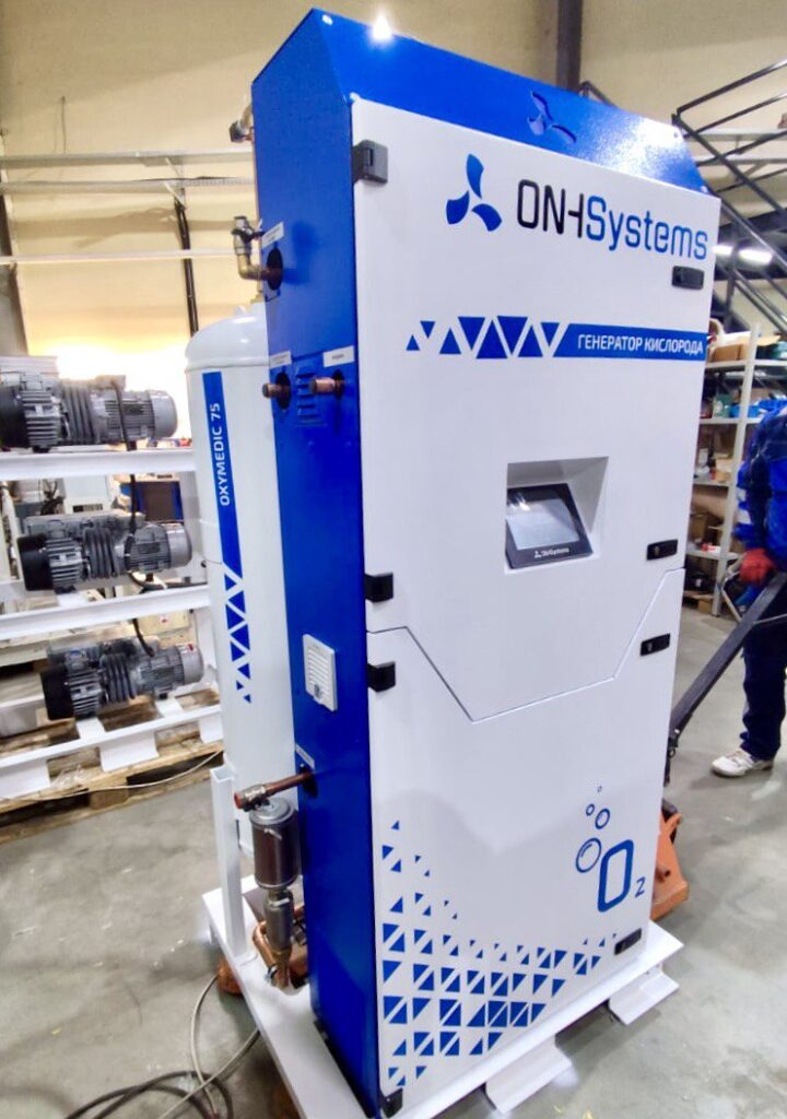 A private clinic in Stavropol, Russia, successfully received a complete oxygen generation system, consisting of two Oxymedic 100 units and one Oxymedic 75 unit. The system was delivered in a stationary configuration and equipped with a PU 15-6.0 switching device.